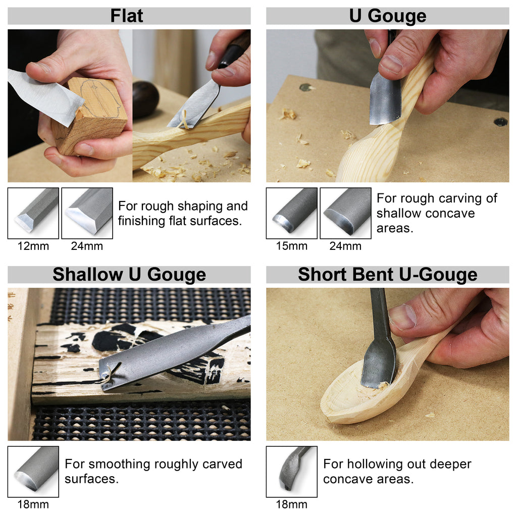 This 6-piece carving chisel set includes carefully selected shapes and sizes for versatile use.