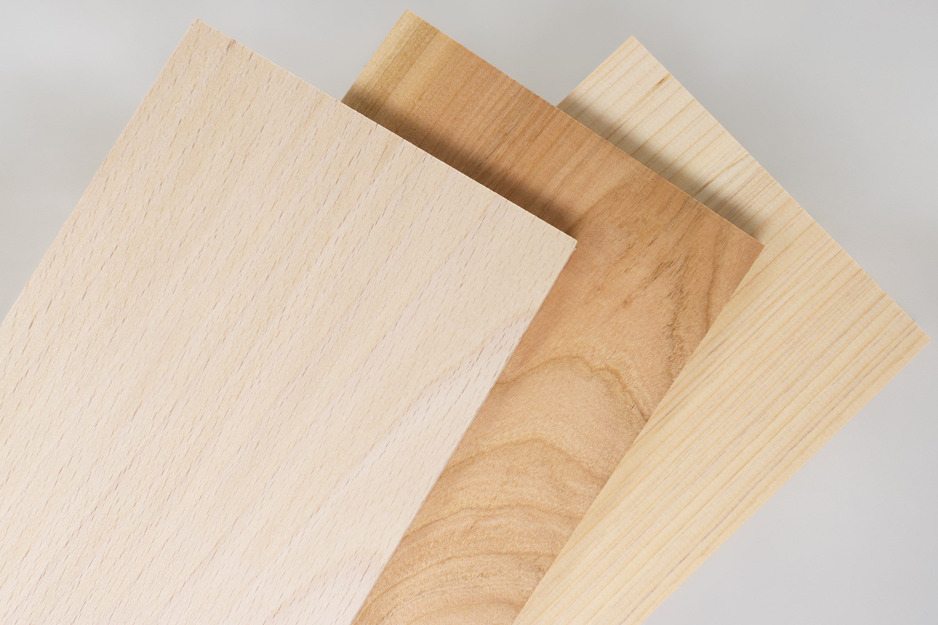 The set includes three different wood species—one piece of each—so you can explore new materials
