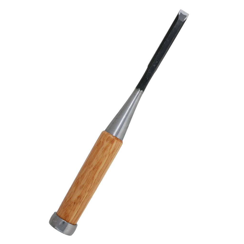This chisel is designed for cutting shallow mortises, finishing rough mortises, and working precisely along tenon shoulders and cheeks.