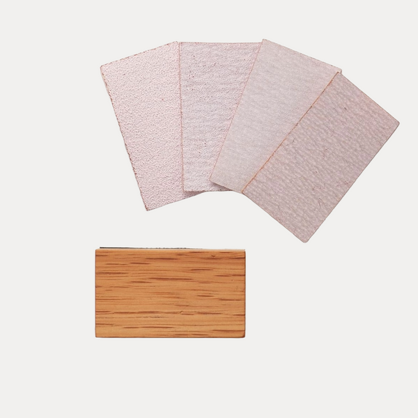 (11) Sandpaper Holder with Sandpaper Material: Red Oak(Sandpaper Holder) Size: L53× w30 × H20mm (Sandpaper: 5 pieces each of #80, #120, #240, #320) |